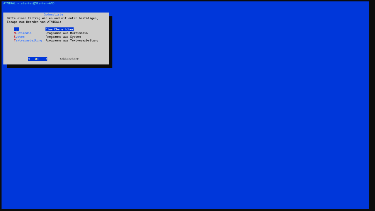atmiral.sh): Das Hauptprogramm mit individuell anpassbaren Befehlssammlungen. - ATMIRAL Dateibrowser (